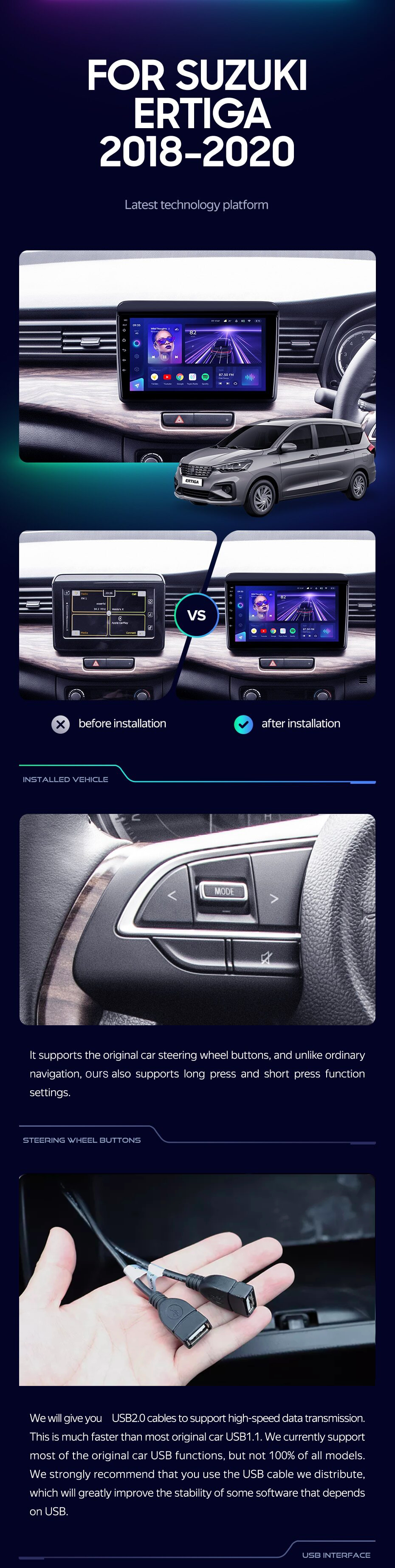 Suzuki Ertiga 2017 - 2021 9 Inch Android Auto Apple Carplay Navigation System